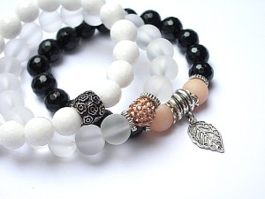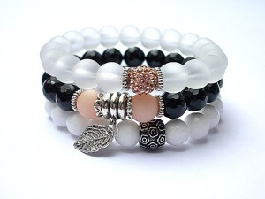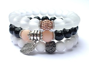 ******** PRAWA AUTORSKIE ********* Nowa odsłona naszych setów - "ACCENT-POINT SET" - neutralne ,stonowane tło i akcent kolorystyczny jako tylko mały punkt . W tym przypadku akcentem jest kolor brzoskwiniowy Komplet trzech bransoletek wykonanych z matowego szkła [10mm], onyksu fasetowanego [10mm], jadeitów [10mm], przekładki shamballa wysadzanej kryształkami Swarovskiego oraz elementów metalowych w kolorze srebra. Bransoletki pasują na nadgarstek 16-17cm. Biżuteria ozdobnie zapakowana