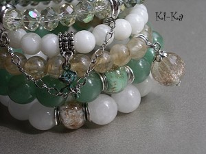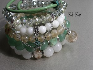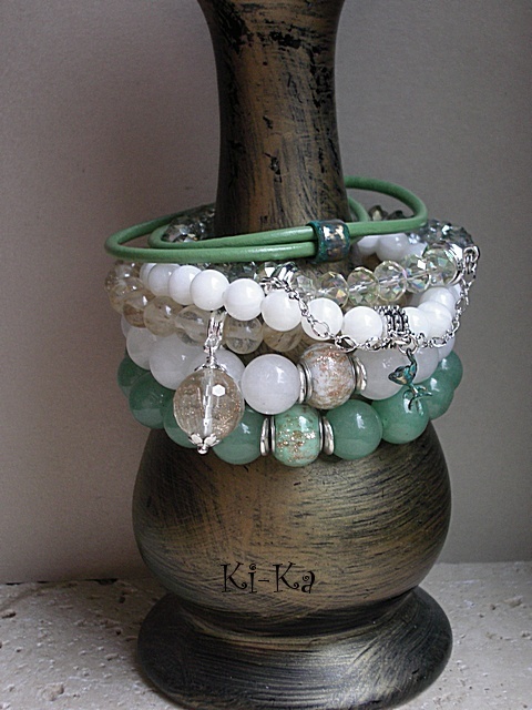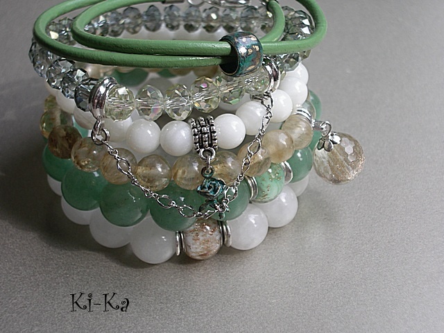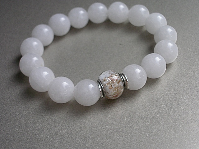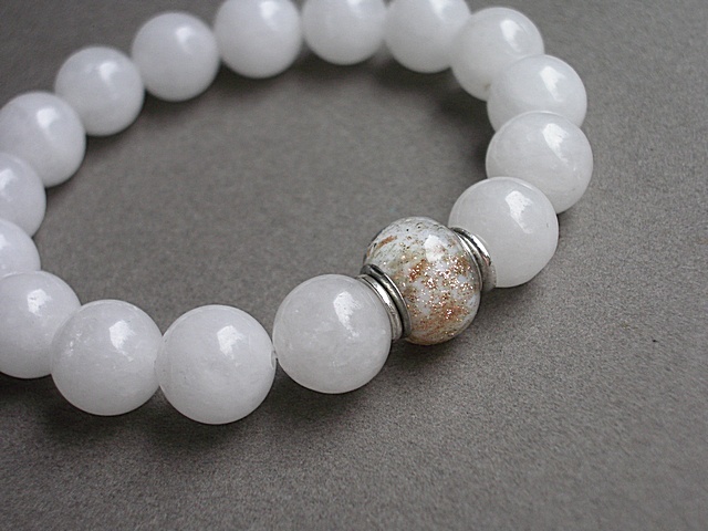 Bransoletka wykonana z naturalnych minerałów [agaty 14mm] oraz przekładki w kolorze srebrnym. Bransoletka na gumce silikonowej. Pasuje na nadgarstek 16-17,5cm. Biżuteria ozdobnie zapakowana. Bransoletka może stanowić komplet z innymi bransoletkami - przykładowe zdjęcia.