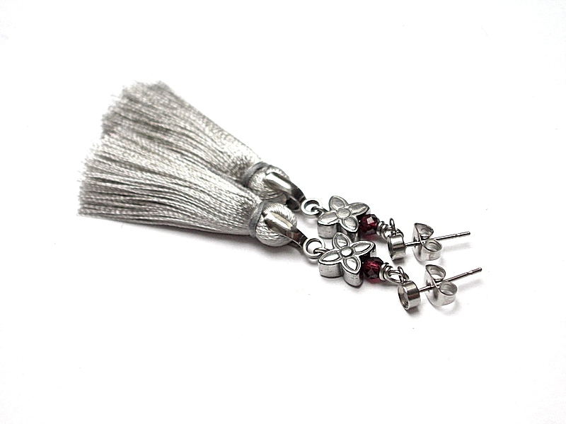 Kolczyki wykonane ze stali szlachetnej w połączeniu z satynowymi