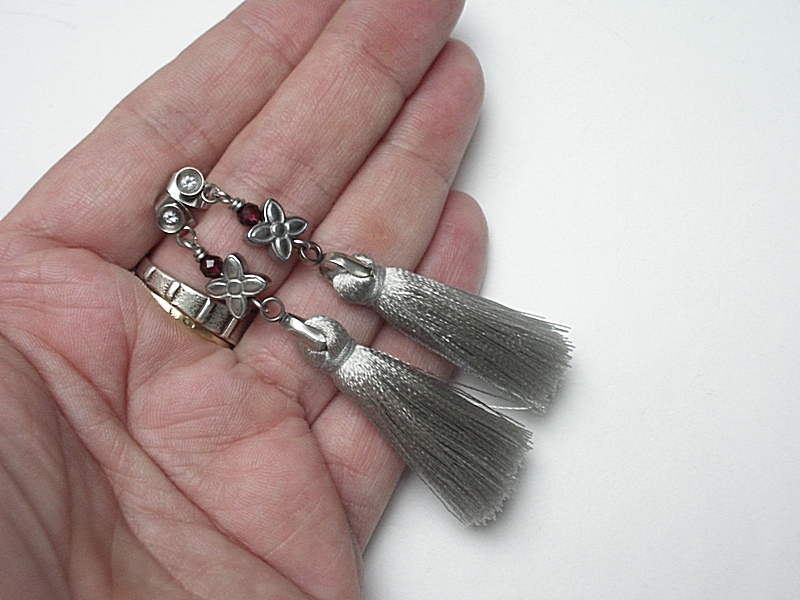 chwostami, hematytowymi kwiatkami [8mm], fasetowanymi granatami [3mm].