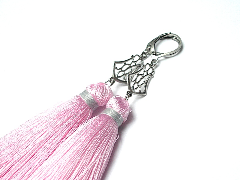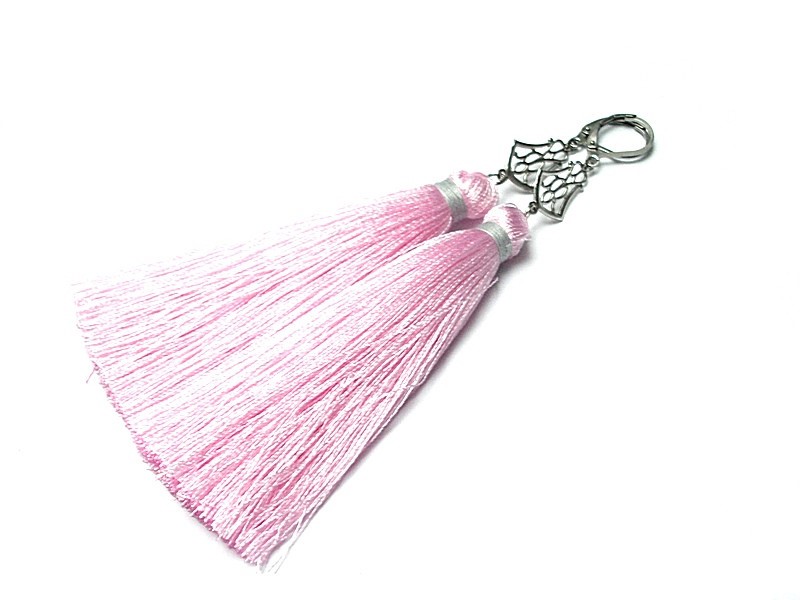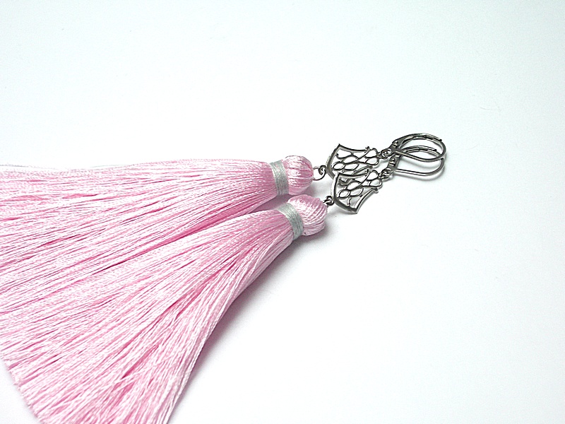 Kolczyki wykonane w całości ze stali szlachetnej w połączeniu z grubymi satynowymi chwostami. Całkowita długość kolczyków 11,5cm. Biżuteria ozdobnie zapakowana.