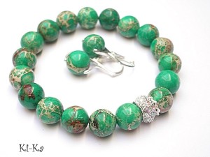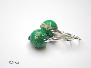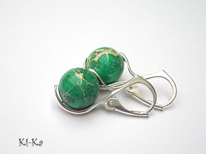 PROJEKT AUTORSKI. Kolekcja Alloys Collection to propozycje, które wykonywane są tylko z brązu, brązu platerowanego srebrem [pr. 925] lub stali szlachetnej - żadnych innych metali. Kolczyki wykonane z brązu platerowanego srebrem [pr. 925] oraz naturalnych kamieni - jaspis cesarski [10mm]. Całkowita długość kolczyków ok. 3cm. Biżuteria ozdobnie zapakowana. Do kompletu można dokupić bransoletkę - przykładowe zdjęcia
