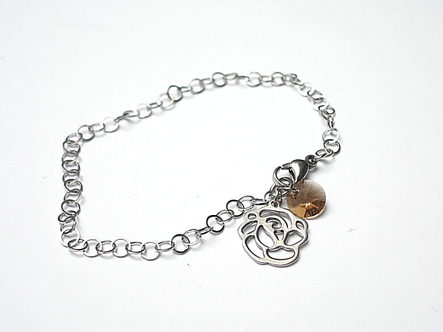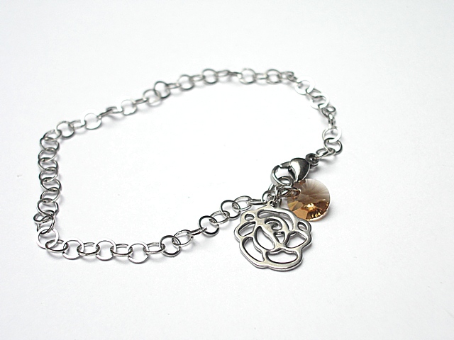 PROJEKT AUTORSKI . Kolekcja Alloys Collection to propozycje, które wykonywane są tylko z brązu, brązu platerowanego srebrem [pr. 925] lub stali szlachetnej - żadnych innych metali. Delikatna bransoletka wykonana w całości ze stali szlachetnej [nie ściera się] oraz kryształka Swarovskiego [8mm]. Całkowita długość bransoletki 19cm. Biżuteria ozdobnie zapakowana