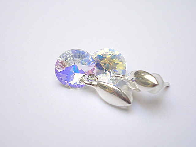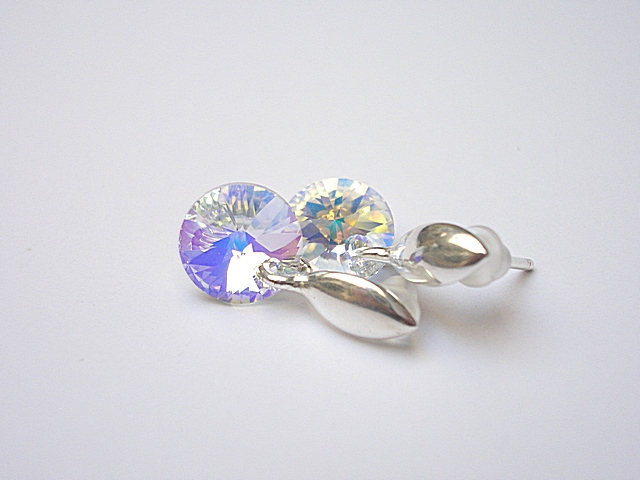 PROJEKT AUTORSKI . Kolekcja Alloys Collection to propozycje , które wykonywane są tylko z brązu ,brązu platerowanego srebrem [pr.925] lub stali szlachetnej -żadnych innych metali. Drobne kolczyki wykonane z brązu platerowanego srebrem [pr.925] oraz kryształków Swarovskiego [rivioli 8mm Crystal AB] Całkowita długość kolczyków ok. 2cm. Biżuteria ozdobnie zapakowana