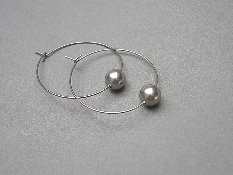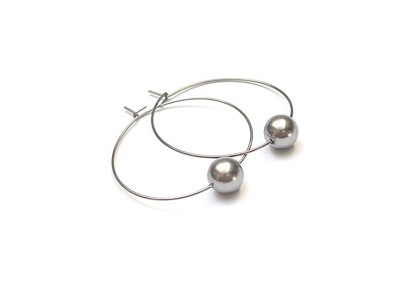 Kolczyki wykonane ze stali szlachetnej w połączeniu z perłami Swarovski [8mm]. Średnica kół [33mm]. Biżuteria ozdobnie zapakowana