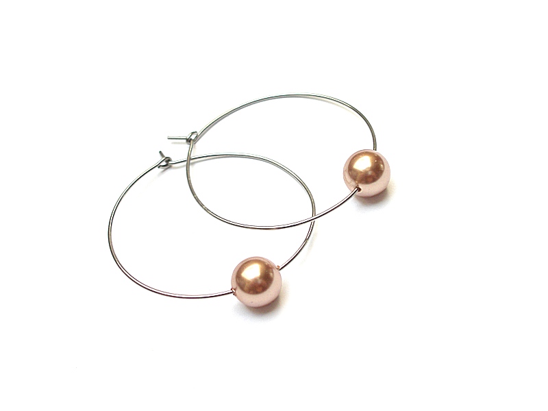 Kolczyki wykonane ze stali szlachetnej w połączeniu z perłami Swarovski [8mm]. Średnica kół [33mm]. Biżuteria ozdobnie zapakowana.