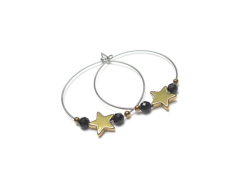 Kolczyki wykonane ze stali szlachetnej w połączeniu z hematytami oraz