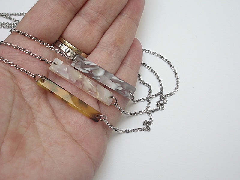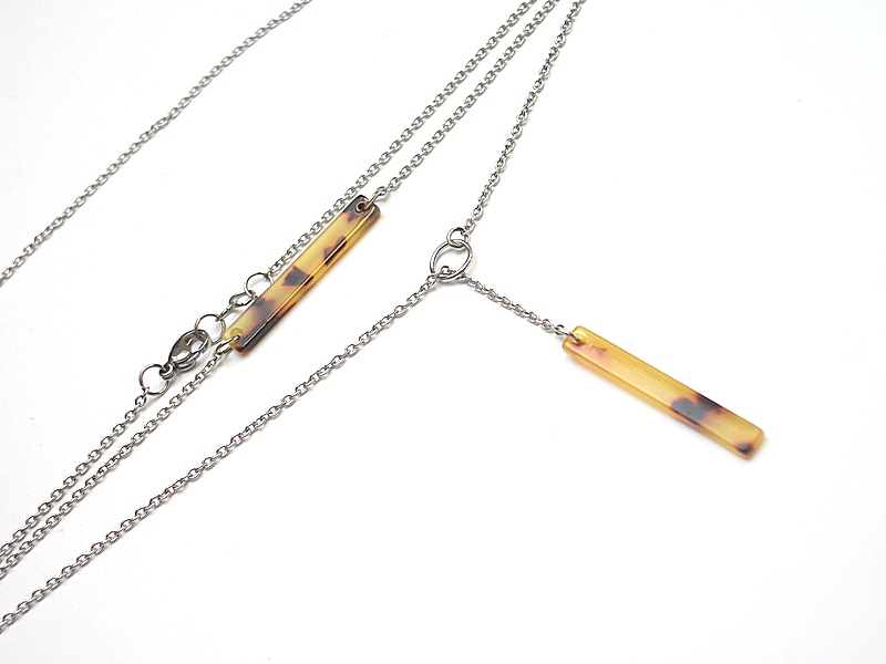 Komplet dwóch naszyjników wykonany w całości ze stali szlachetnej w połączeniu z patyczkami z żywicy. Długość naszyjników 65,5cm i 43cm plus kilka ogniw. Biżuteria ozdobnie zapakowana.
