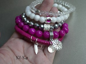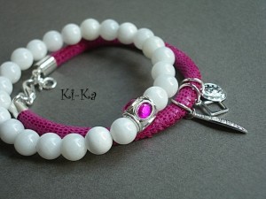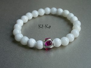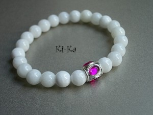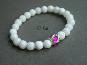 Bransoletka wykonana z naturalnych minerałów - jadeity fasetowane [10mm] oraz elementów w kolorze srebra. Bransoletka na gumce silikonowej. Pasuje na nadgarstek 15-16,5cm. Biżuteria ozdobnie zapakowana. Bransoletka może stanowić komplet z innymi bransoletkami dostępnymi w naszej galerii - przykładowe zdjęcia.
