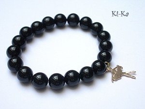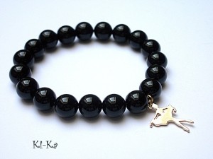 Bransoletka wykonana z naturalnych minerałów -onyks [10mm] oraz elementów w kolorze złotym. Bransoletka na gumce silikonowej. Pasuje na nadgarstek 15,5-17cm. Biżuteria ozdobnie zapakowana
