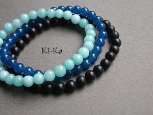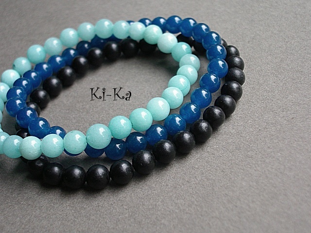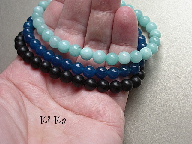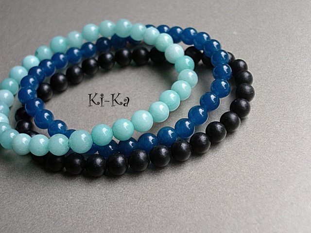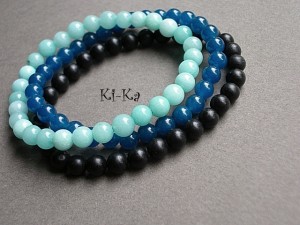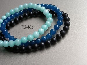 Komplet trzech bransoletek wykonany z naturalnych minerałów - jadeity i onyksy [6mm] . Pasuje na nadgarstek 15-16cm. Bransoletki na gumce silikonowej. Biżuteria ozdobnie zapakowana.