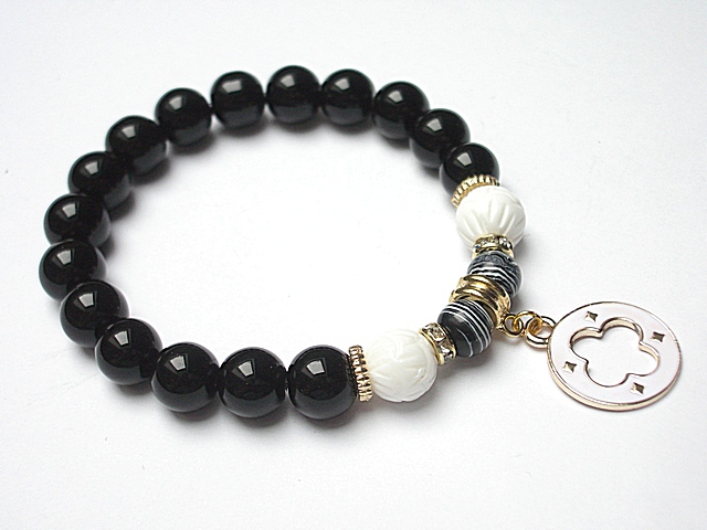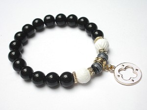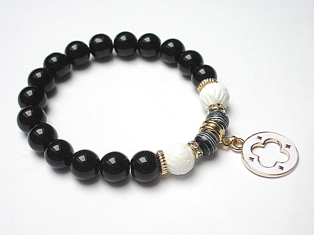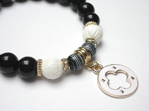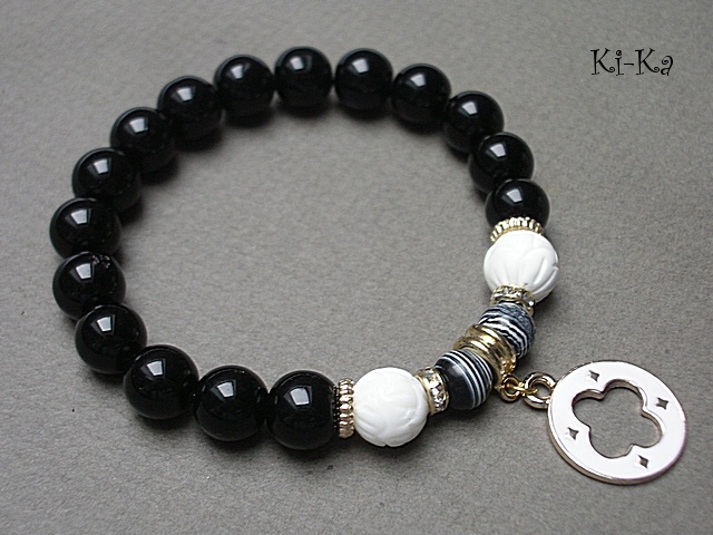 PROJEKTY AUTORSKIE .WŁASNOŚĆ KI-KA. Bransoletka wykonana z rzeźbionych kuleczek muszli [10mm] ,kuleczek prasowanych turkusów[8mm] ,szklanych kuleczek [10mm] oraz elementów w kolorze bladego złota.Bransoletka pasuje na nadgarstek 16-17cm.Bizuteria ozdobnie zapakowana