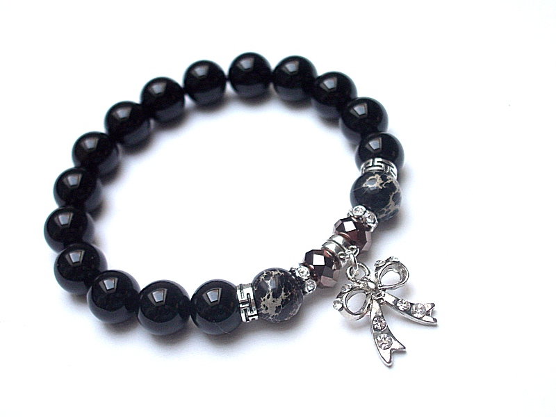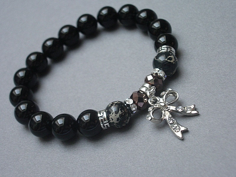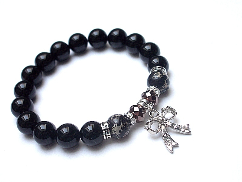 Bransoletka wykonana z naturalnych kamieni - onyksy [10mm], jaspisy