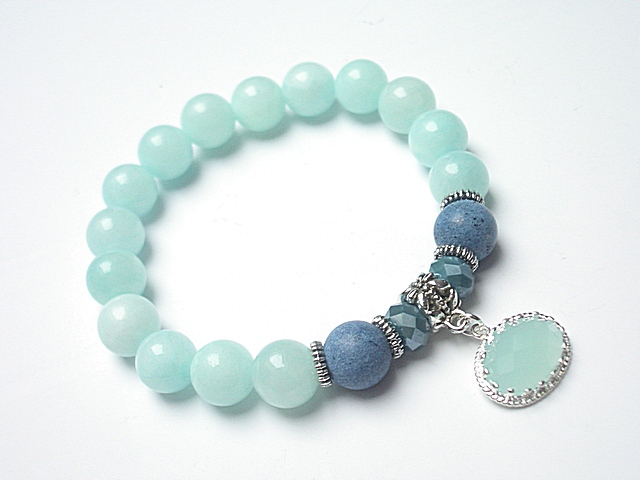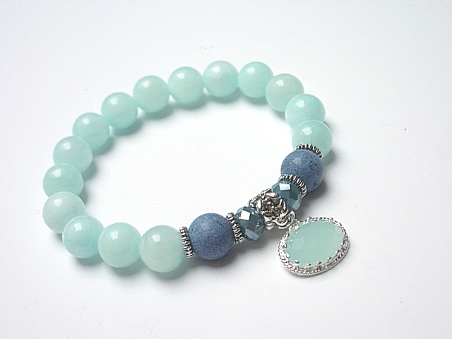 PROJEKT AUTORSKI. WŁASNOŚĆ KI-KA. KOPIOWANIE ZABRONIONE. Bransoletka wykonana z kamieni - jadeity [10mm], matowe jadeity [10mm], kryształki [8mm], zawieszki w okuciu oraz elementów metalowych w kolorze srebrnym. Bransoletka na gumce silikonowej. Pasuje na nadgarstek 16-17cm. Biżuteria ozdobnie zapakowana. Możliwość dopasowania bransoletki do nadgarstka - wcześniej prosimy o kontakt