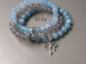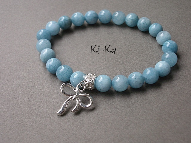 Bransoletka wykonana z naturalnych kamieni półszlachetnych - akwamaryny [8mm] oraz elementów w kolorze srebra. Bransoletka na gumce silikonowej. Pasuje na nadgarstek 15-16,5cm. Biżuteria ozdobnie zapakowana Bransoletka może stanowić komplet z innymi bransoletkami dostępnym w naszej galerii - przykładowe zdjęcia