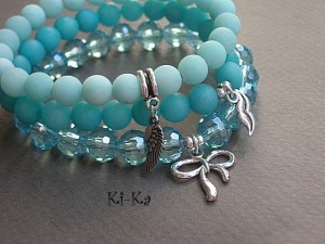 Bransoletka wykonana z kryształków [10mm, szkło bardzo dobrej jakości] oraz elementów w kolorze srebra. Pasuje na nadgarstek 15- 16,5cm. Biżuteria ozdobnie zapakowana. Zdjęcie pierwsze przedstawia przykładowy set.Cena dotyczy bransoletki z kryształków.