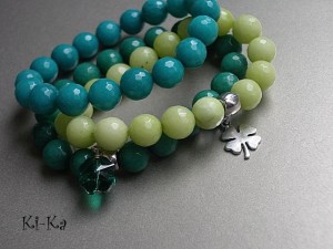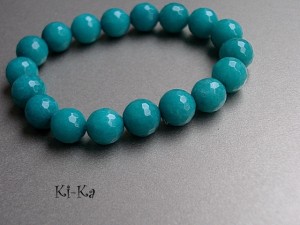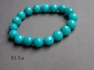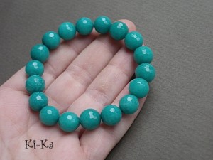 Bransoletka wykonana z fasetowanych kuleczek jadeitów w kolorze turkusowym [12mm]. Bransoletka na gumce silikonowej. Pasuje na nadgarstek 14- 16cm. Biżuteria ozdobnie zapakowana. Bransoletka może stanowić komplet z innymi bransoletkami - przykładowe zdjęcia