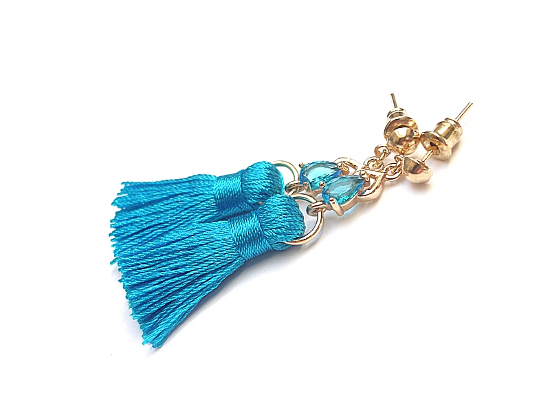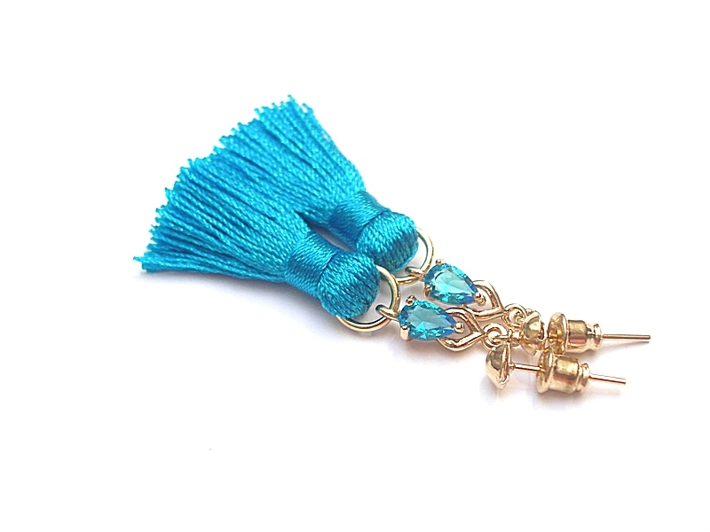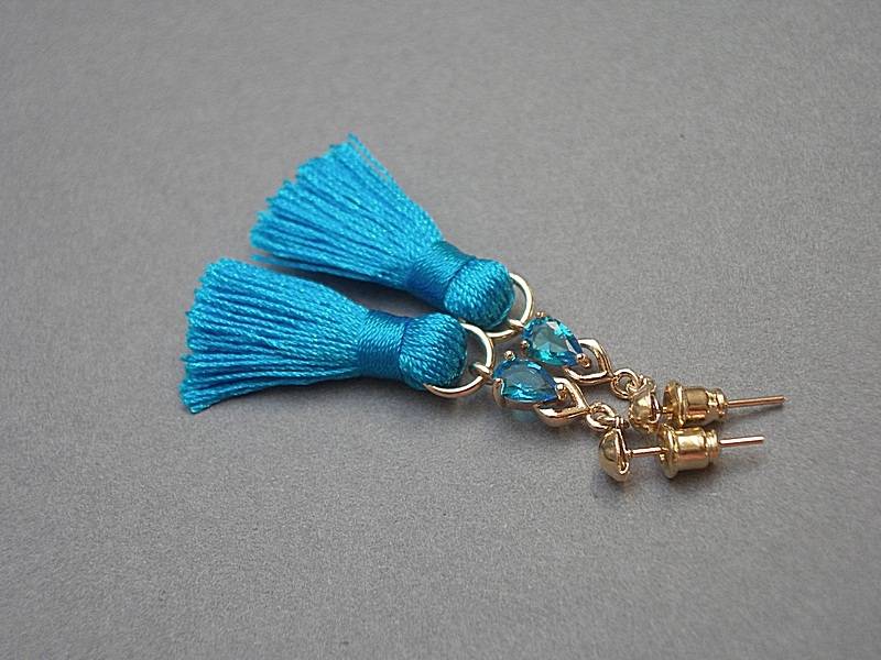 Kolczyki wykonane z chwostów, łączników z cyrkoniami oraz elementów
