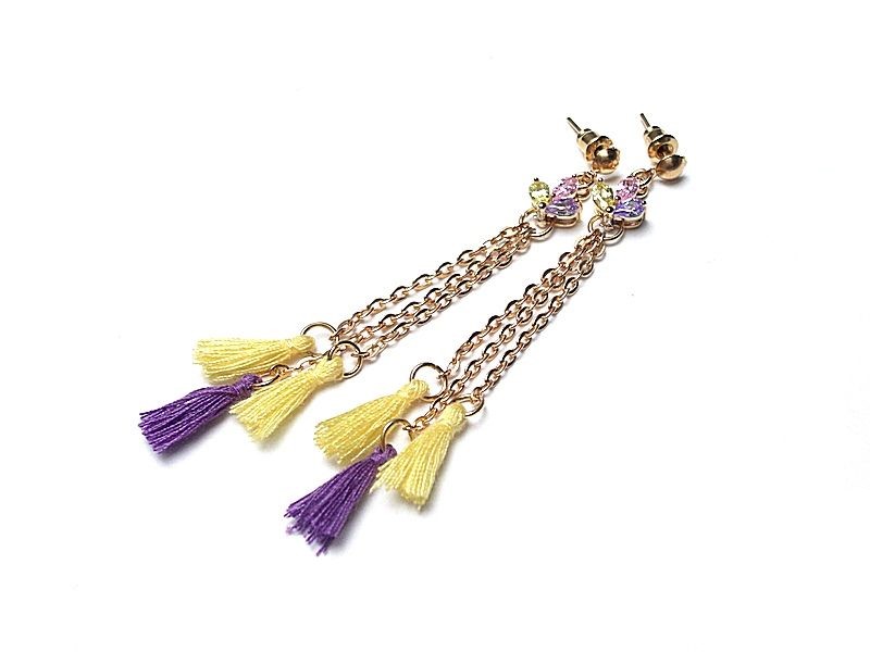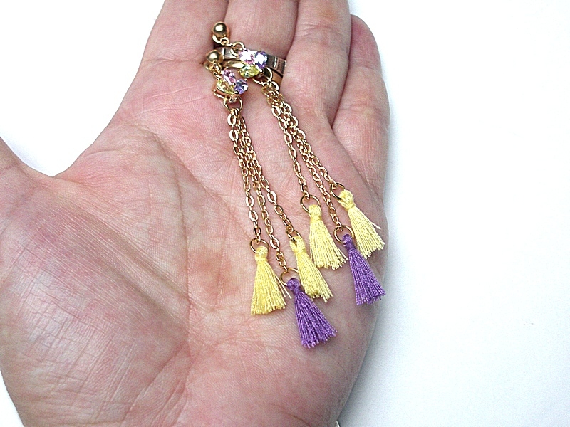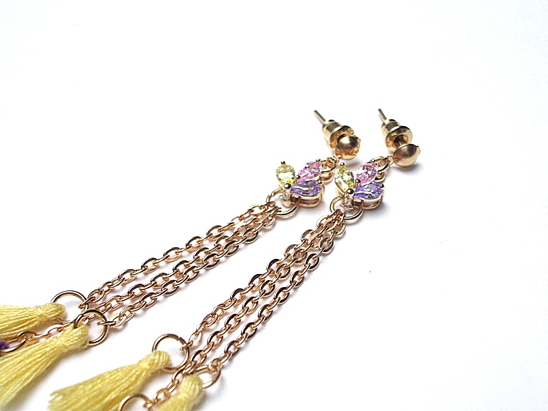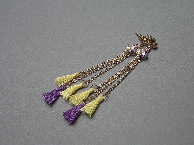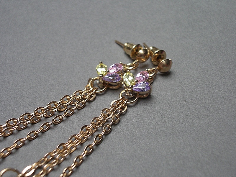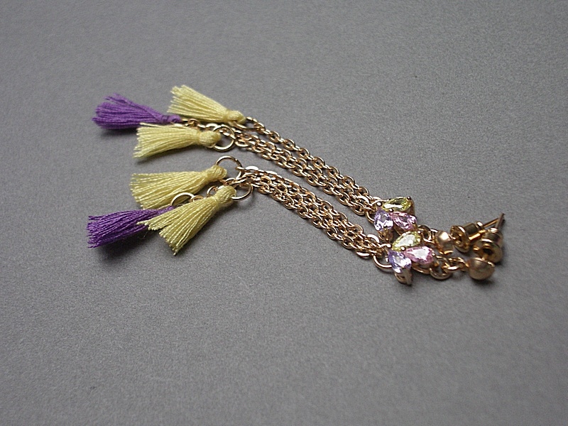 Kolczyki wykonane z chwostów, łączników z cyrkoniami oraz elementów