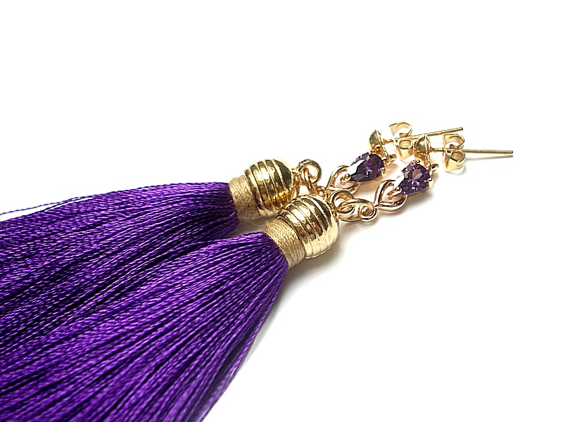 Kolczyki wykonane z chwostów, łączników z cyrkoniami oraz elementów metalowych w kolorze złotym. Długość kolczyków 8,5cm. Biżuteria ozdobnie zapakowana