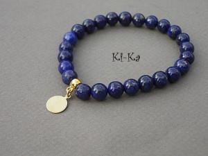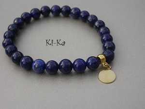 Bransoletka wykonana z naturalnych minerałów - lapis lazuli z pirytem [8mm] oraz elementów w kolorze złota [przywieszka wykonana z mosiadzu]. Bransoletka na gumce silikonowej. Pasuje na nadgarstek 15-16,5cm. Biżuteria ozdobnie zapakowana. Bransoletki mogą stanowić komplet z innymi bransoletkami dostępnymi w naszej galerii - przykładowe zdjęcia