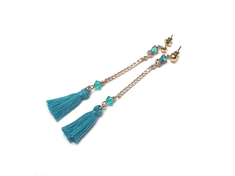 Kolczyki wykonane z chwostów, łączników z cyrkoniami, kryształków Swarovskiego [6mm] oraz elementów metalowych w kolorze złotym. Długość kolczyków 8,5cm. Biżuteria ozdobnie zapakowana.