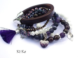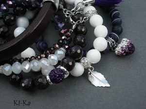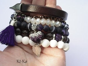 PROJEKT AUTORSKI. WSZELKIE INNE PODOBNE MODELE TO KOPIE NARUSZAJĄCE PRAWA AUTORSKIE. Komplet pięciu bransoletek wykonanych z naturalnych kamieni: jadeity [10mm], agaty matowe [8mm], krysztalków [4 x 6mm oraz 6 x 8mm], rzemienia z naturalnej skóry, przekładki shamballa wysadzanej kryształkami Swarovskiego, przywieszki wysadzanej cyrkoniami, satynowego chwostu oraz elementów metalowych w kolorze srebra.. Bransoletki z kamieni na gumce silikonowej. Bransoletki pasują na nadgarstek 15,5 - 16,5cm. Biżuteria ozdobnie zapakowana