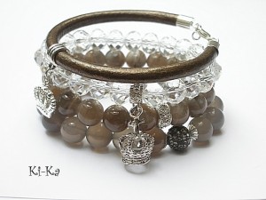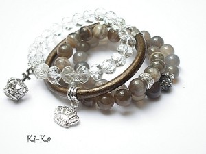Brown, grey and white set - bransoletki