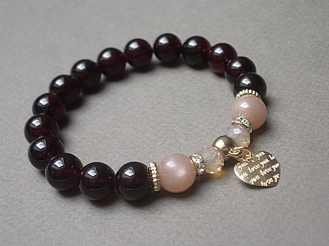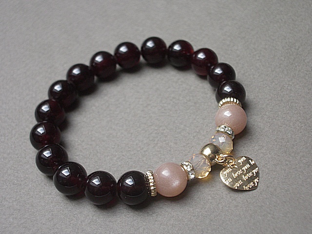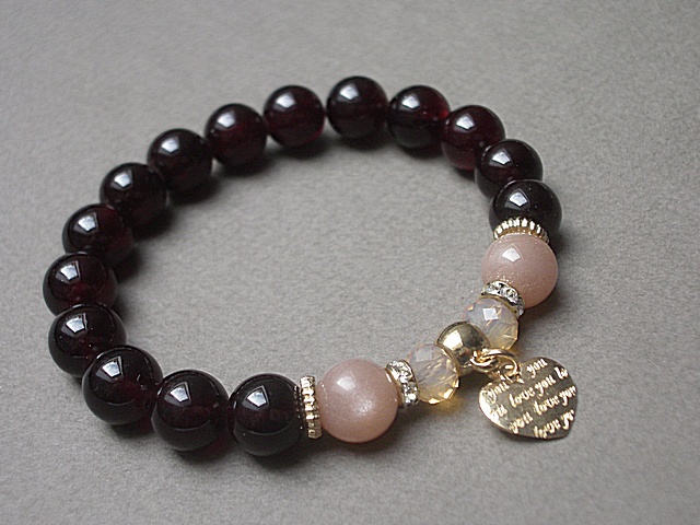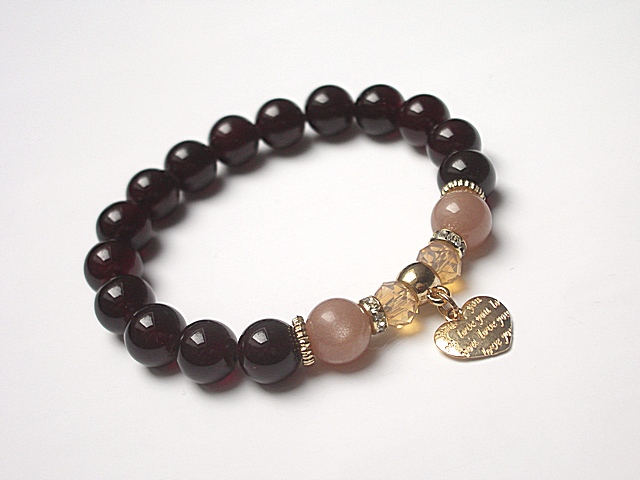 PROJEKT AUTORSKI. WŁASNOŚĆ KI-KA. KOPIOWANIE ZABRONIONE. Bransoletka wykonana z kuleczek marmurów [10mm], kamienia słonecznego [10mm], kryształków [6 x 8mm] oraz elementów metalowych w kolorze złota. Pasują na nadgarstek 16-17cm. Biżuteria ozdobnie zapakowana. Zdjęcia nie uchwyciły faktycznego koloru kamieni. W rzeczywistości kolor marmuru jest bordowy