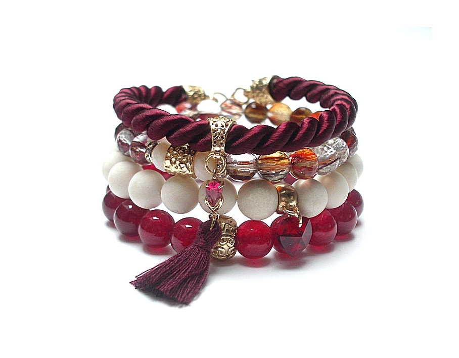 Komplet czterech bransoletek wykonanych z naturalnych, minerałów: kwarc