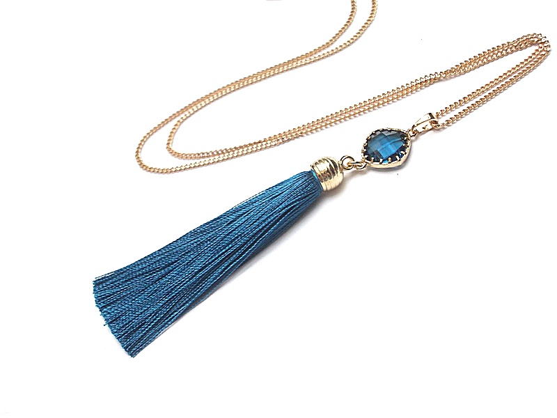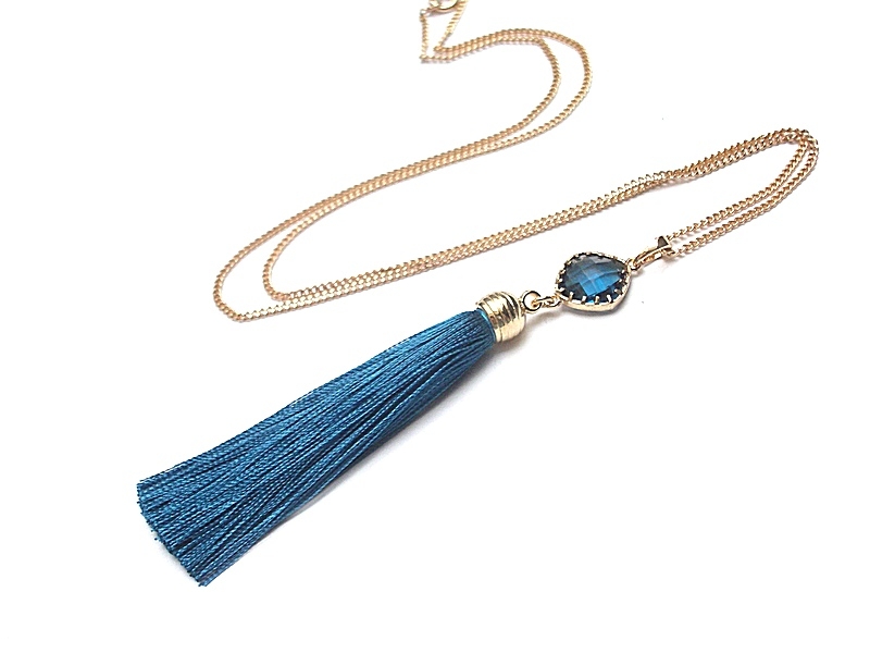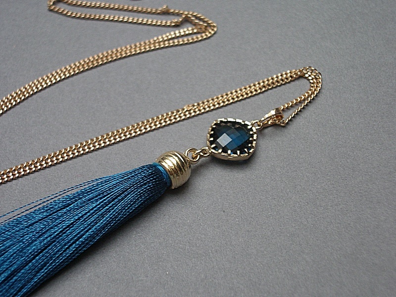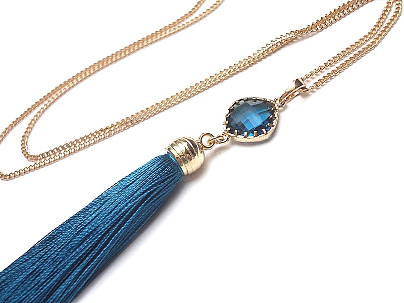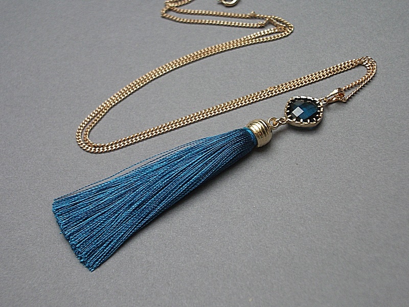 okuciu oraz satynowym chwostem. Długość łańcuszka 60cm. Biżuteria
