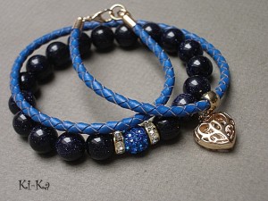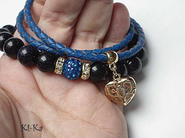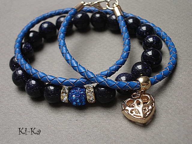 PROJEKTY AUTORSKIE. WŁASNOŚĆ KI-KA.KOPIOWANIE ZABRONIONE. Komplet dwóch bransoletek wykonany z kuleczek nocy kairu [10mm] ,kuleczki shamballa [10mm] ,plecionego rzemienia z naturalnej skóry oraz elementów metalowych w kolorze tzw.różowego złota. Bransoletki pasują na nadgarstek 16 -17cm. Bransoletki na gumce silikonowej. Biżuteria ozdobnie zapakowana