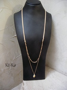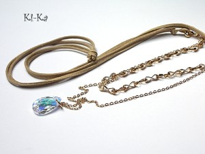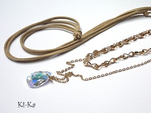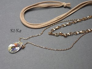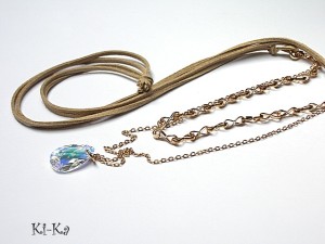 PROJEKT AUTORSKI. Długi naszyjnik wykonany z elementów w kolorze złota, woskowanego sznurka, kryształka Swarovskiego. Biżuteria ozdobnie zapakowana. Do kompletu można dokupić kolczyki - dostępne w naszej galerii [zdjęcia]