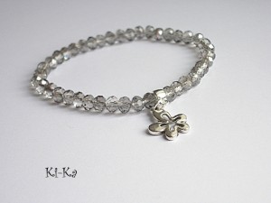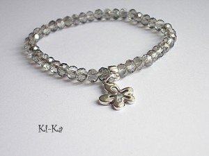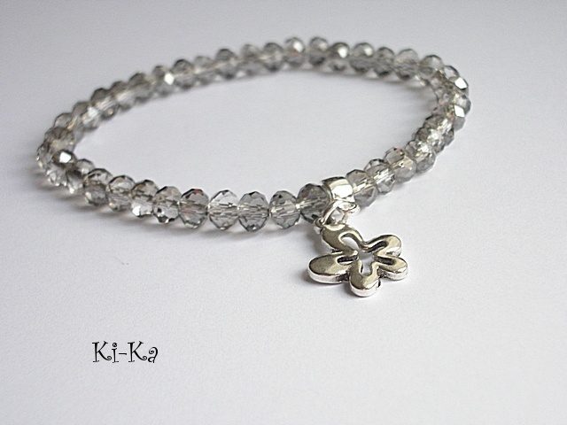 Bransoletka wykonana z fasetowanych szklanych oponek [6mm] oraz elementów w kolorze srebra. Bransoletka na gumce silikonowej. Pasuje na nadgarstek 15-16cm. Biżuteria ozdobnie zapakowana.