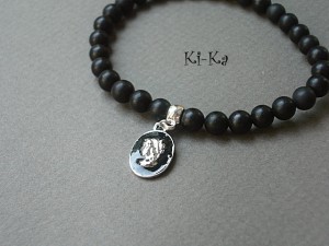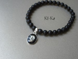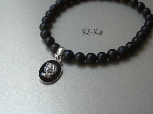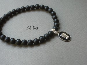 Bransoletka wykonana z naturalnych minerałów - black stone [6mm] oraz elementów w kolorze srebra. Pasuje na nadgarstek 15,5- 16,5cm. Biżuteria ozdobnie zapakowana. Zdjęcie pierwsze przedstawia przykładowy set.Cena dotyczy bransoletki z matowych, czarnych kamieni.