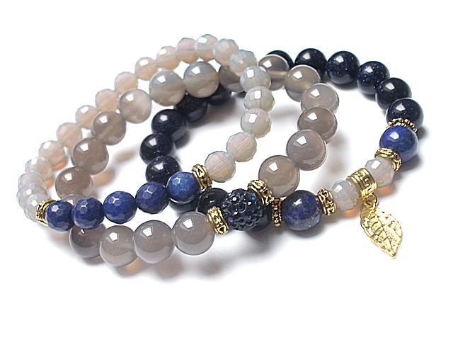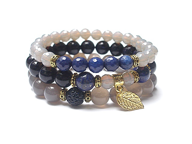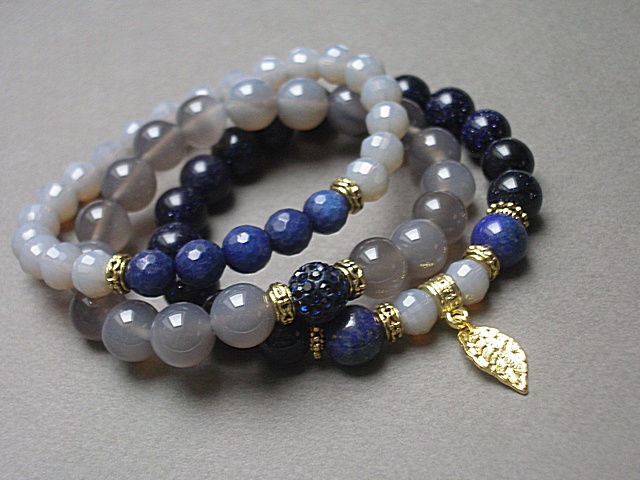 Komplet trzech bransoletek wykonanych z naturalnych kamieni - agaty [10mm], kuleczki nocy kairu [10mm], lapis lazuli [10mm], fasetowane jadeity [8mm], kryształków [8mm], kuleczki shamballi wysadzanej kryształkami Swarovskiego [10mm] oraz elementów metalowych w złotym kolorze. Bransoletki pasują na nadgarstek 16-17cm. Biżuteria ozdobnie zapakowana. PROJEKTY AUTORSKIE. NAŚLADOWNICTWO NIE DOZWOLONE. PRACA DATOWANA