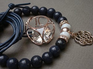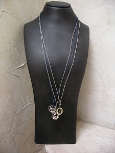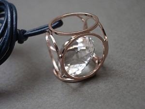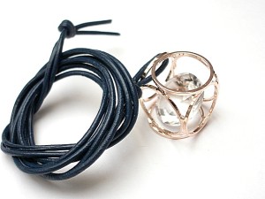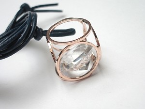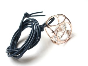 Naszyjnik wykonany z długiego, skórzanego rzemienia oraz przywieszki z mosiądzu w kolorze tzw. różowego złota złotym [w środku kostki znajduje się cyrkonia w kolorze crystal, która kształtem przypomina diament]. Naszyjnik może stanowić komplet z bransoletką - zdjęcia. W ofercie inne kolory naszyjników - zdjęcia. Biżuteria ozdobnie zapakowana.