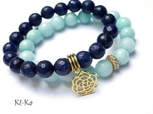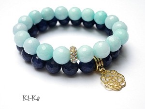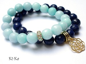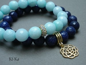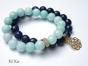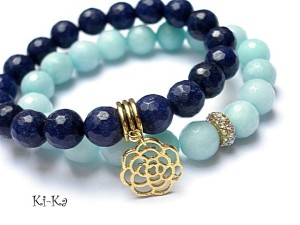 Komplet dwóch bransoletek wykonanych z naturalnych minerałów - jadeitów [10mm], przekładki wysadzanej cyrkoniami oraz elementów w kolorze złotym . Pasują na nadgarstek 15- 16,5cm. Biżuteria ozdobnie zapakowana.