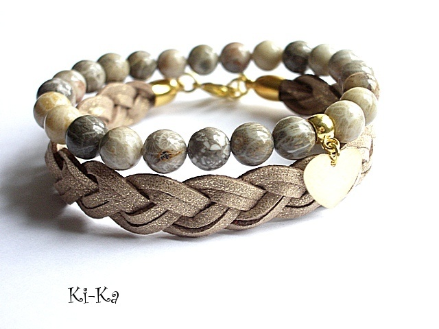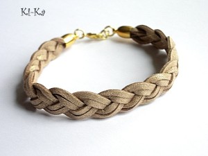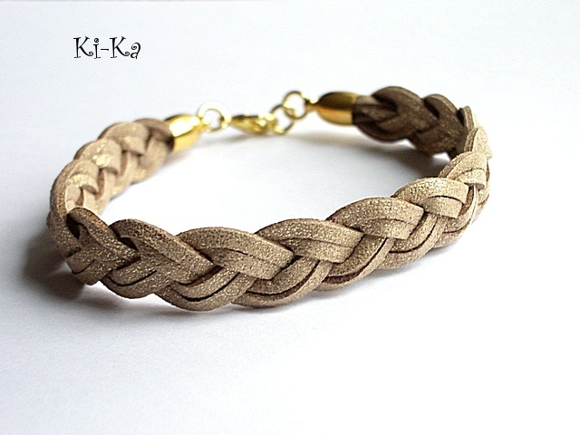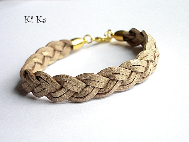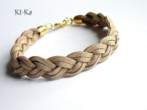 Bransoletka wykonana z rzemieni z naturalnej skóry splecionych w warkocz oraz elementów w kolorze złotym. Pasuje na nadgarstek 15-16,5cm. Biżuteria ozdobnie zapakowana.Bransoletka może stanowić komplet z innymi bransoletkami -przykładowe zdjęcia.