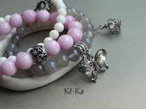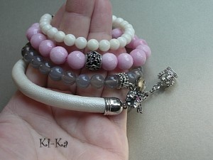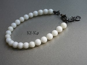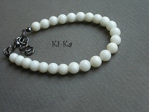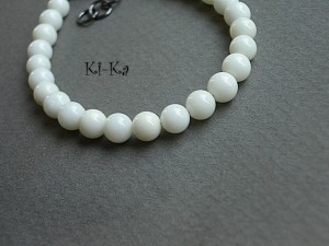Bransoletka wykonana z kuleczek korala w kolorze ecru [6mm] oraz elementów w kolorze srebra. Pasuje na nadgarstek 15,5 - 16,5cm. Biżuteria ozdobnie zapakowana. Bransoletka może stanowić komplet z innymi bransoletkami - przykładowe zdjęcia. Zdjęcie pierwsze przedstawia przykładowy set