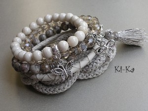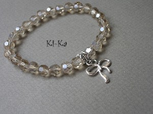 Bransoletka wykonana z kryształków [szkło bardzo dobrej jakości] oraz elementów w kolorze srebra. Pasuje na nadgarstek 15-16,5m. Biżuteria ozdobnie zapakowana. Zdjęcie pierwsze przedstawia przykładowy set. Cena dotyczy bransoletki z kryształków .