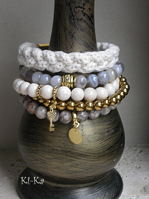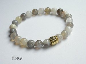 Bransoletka wykonana z naturalnych minerałów [agaty botswana 8mm], oraz elementów w kolorze złota. Pasuje na nadgarstek 15 -16,5cm. Bransoletka na gumce silikonowej. Biżuteria ozdobnie zapakowana. Bransoletka może stanowic komplet z innymi modelami - przykładowe zdjęcia.