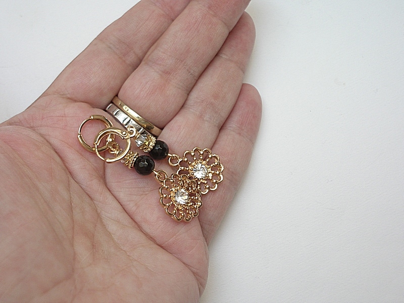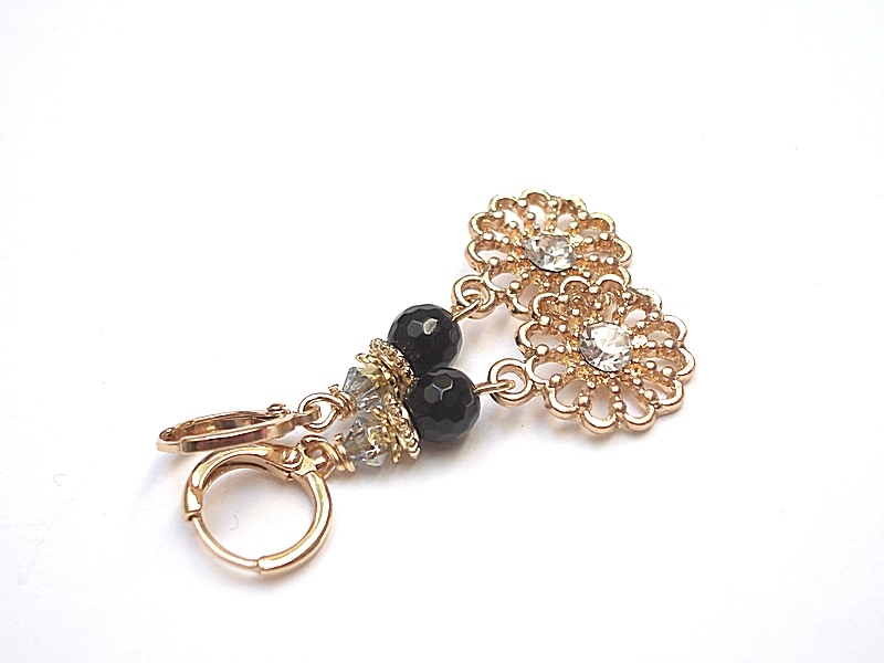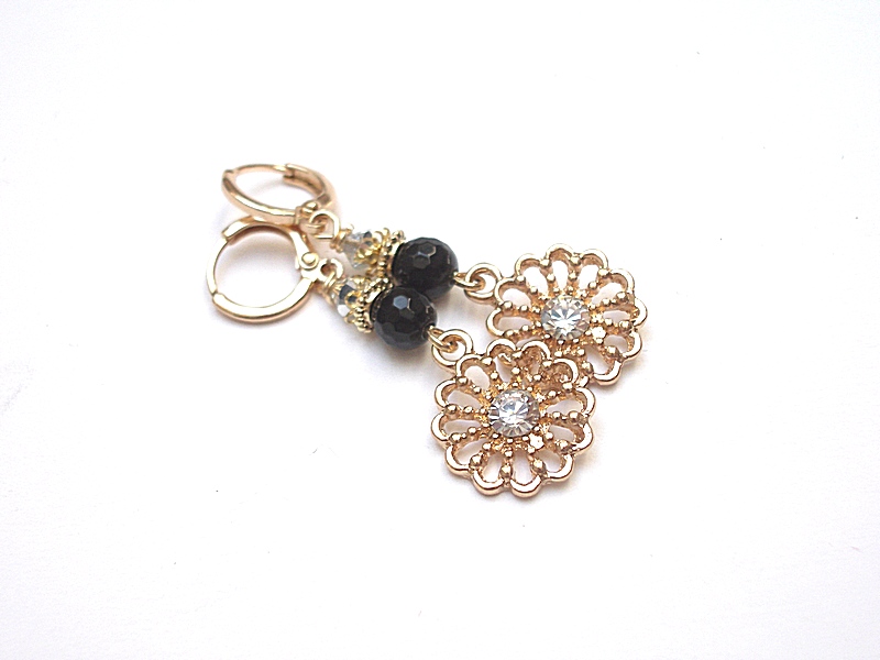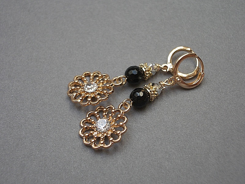 Kolczyki wykonane z elementów metalowych w kolorze złotym w tym kwiatków
