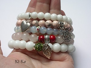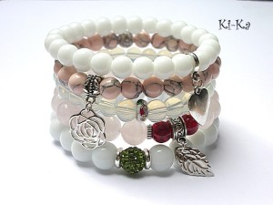 PROJEKT AUTORSKI. WSZELKIE INNE PODOBNE MODELE TO KOPIE NARUSZAJĄCE PRAWA AUTORSKIE .Komplet pięciu bransoletek wykonanych z naturalnych kamieni - jadeity [8 i 10mm], howlit [8mm], kryształków [8mm], przekładki shamballa wysadzanej kryształkami Swarovskiego oraz elementów metalowych w kolorze srebrnym. Pasują na nadgarstek 15,5-16,5cm . Biżuteria ozdobnie zapakowana.