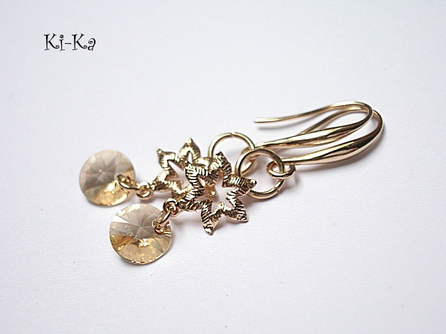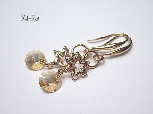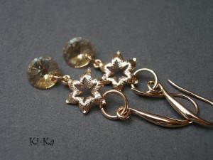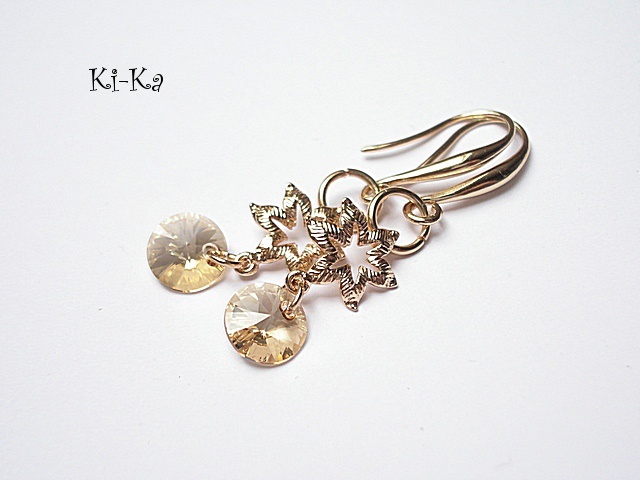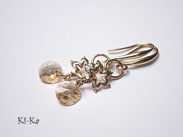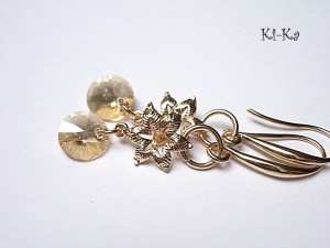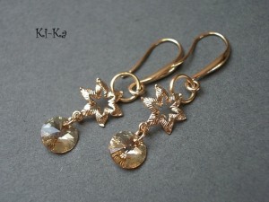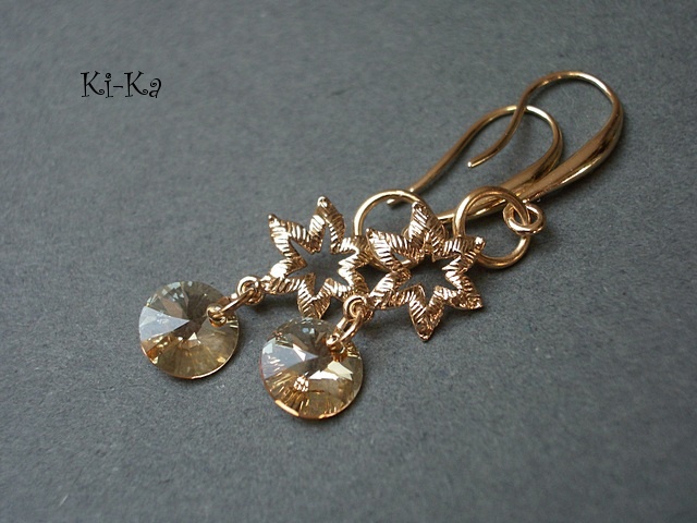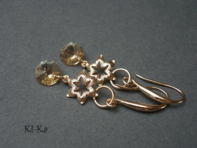 Kolczyki wykonane z kryształków Swarovskiego [golden shadow] oraz elementów metalowych w kolorze tzw. różowego złota . Biżuteria ozdobnie zapakowana.