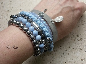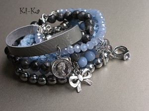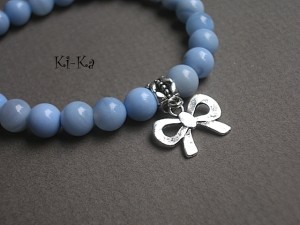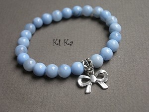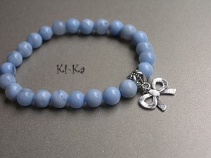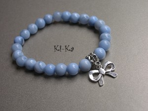 Bransoletka wykonana z naturalnych minerałów [chalcedon 8mm] oraz elementów w kolorze srebrnym . Bransoletka na gumce silikonowej. Pasuje na nadgarstek 15- 16,5cm. Biżuteria ozdobnie zapakowana..