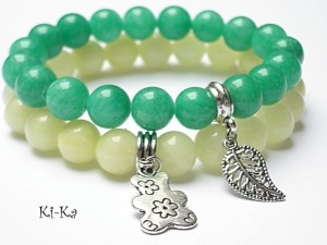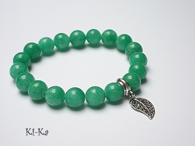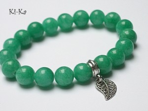 Bransoletka wykonana z naturalnych kamieni - jadeit [10mm] oraz elementów w kolorze srebra. Bransoletka na gumce silikonowej. Pasuje na nadgarstek 15-16,5cm. Biżuteria ozdobnie zapakowana Bransoletka może stanowić komplet z innymi bransoletkami dostępnym w naszej galerii - przykładowe zdjęcia.