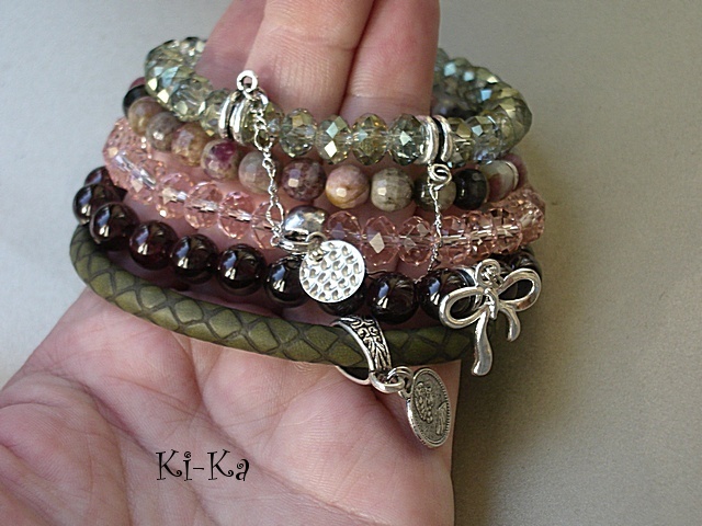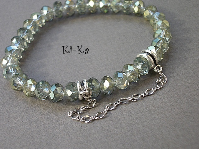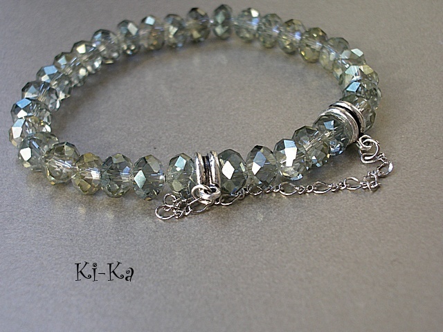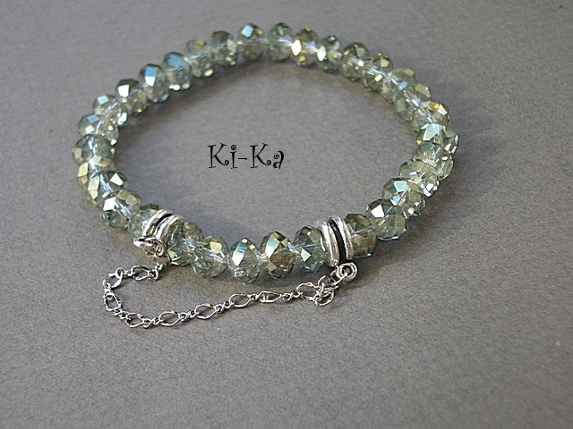 Bransoletka wykonana z kryształków [szkło bardzo dobrej jakości] oraz elementów w kolorze srebra. Pasuje na nadgarstek 15,5- 16,5cm. Bransoletka na gumce silikonowej. Biżuteria ozdobnie zapakowana. Bransoletka może stanowić komplet z innymi bransoletkami dostępnymi w naszej galerii - przykładowe zdjęcia.