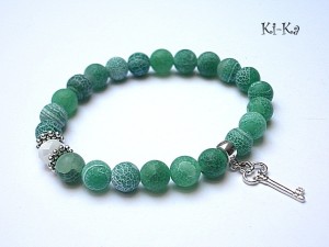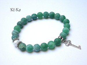 Bransoletka wykonana z naturalnych kamieni -agat trawiony [8mm], kryształka [6 x 8mm] oraz elementów metalowych w srebrnym kolorze. Bransoletka pasuje na nadgarstek 15 - 16,5cm. Biżuteria ozdobnie zapakowana. Możliwość dopasowania do nadgarstka - wcześniej prosimy o kontakt.