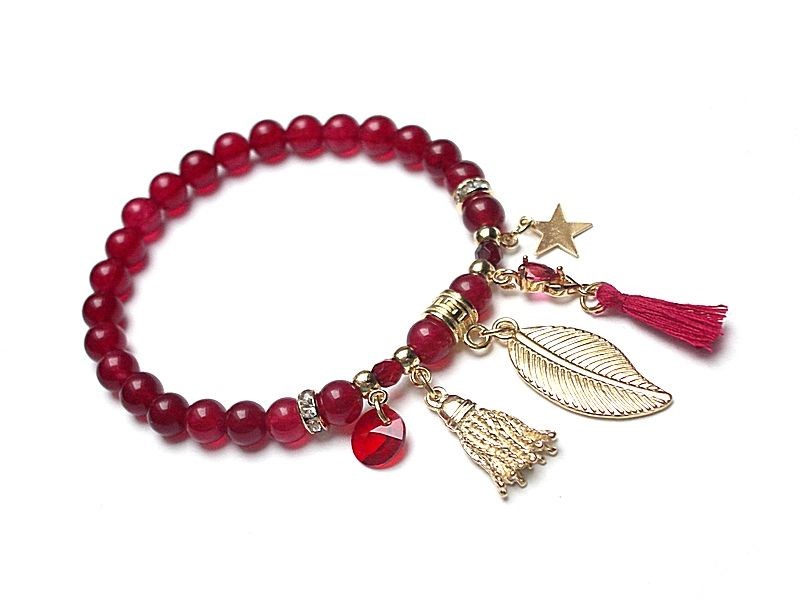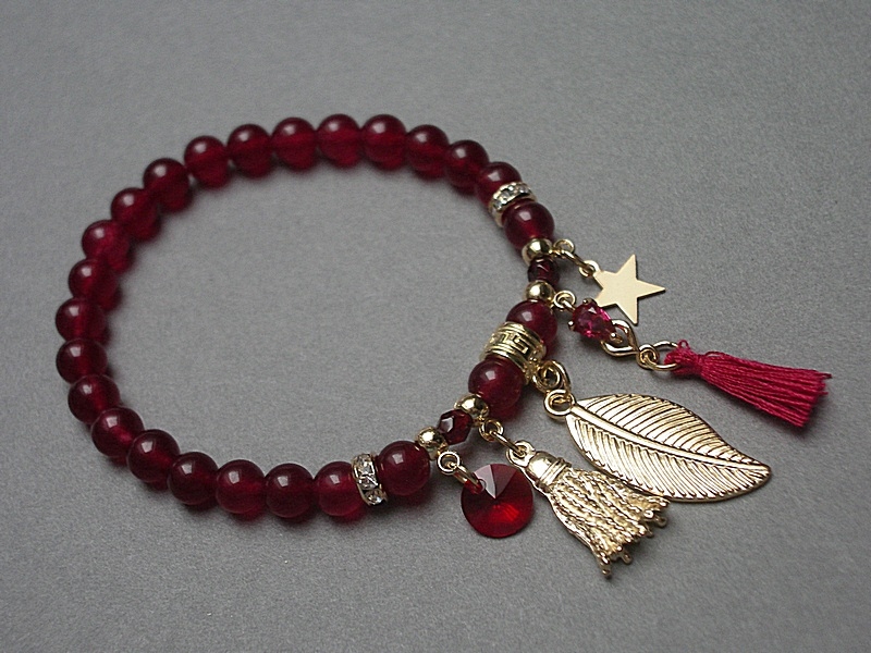 Bransoletka wykonana z naturalnych kamieni: jadeity [6mm], kryształki